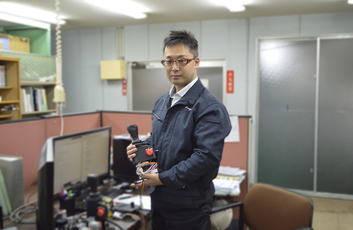 さらに、電気油圧制御技術にも力を入れていて、操作レバーや制御システムまで自社で開発しています。その技術力を評価していただき、ほかの作業機メーカーさんからシステム提供の依頼をいただくこともあります。