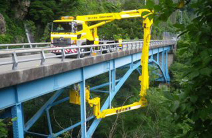 橋梁点検車による点検 北添さん:その通りです。経験豊富なベテランが、会社にいながら現地の映像を見て、「そこ、もう少し右を映して」「こう指示して」と、リアルタイムで的確なアドバイスを送れるようになりました。