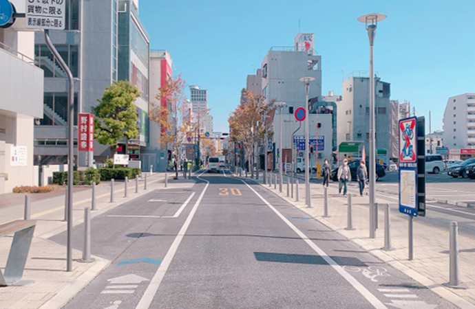 昔は「車が通れればいい」という時代もありましたが、今は逆。中心市街地を活性化させるためには、人が歩いていて気持ちいい空間づくりが必要です。街路樹も植えて、歩行者がゆったり行き来できるように設計しました。